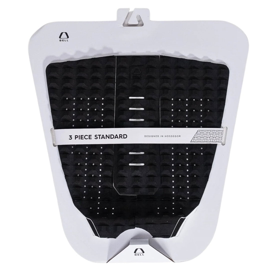 A three-piece traction pad from Bell provides reliable grip and a natural board feel, featuring a perforated traction pattern that enhances water flow and reduces slippage. The precision-cut segments easily adapt to various tail shapes, allowing for quick and accurate placement while ensuring a secure back-foot lock during sharp turns and manoeuvres.