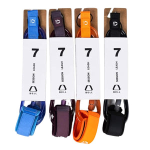 The Bell Session surfboard leash delivers dependable security and lasting comfort for intermediate to advanced surfers. A seven-foot length paired with a seven millimetre cord offers an ideal balance of strength and low drag. A padded neoprene cuff combined with an efficient swivel system keeps the fit secure and helps prevent tangles, allowing attention to stay on the waves rather than the leash.