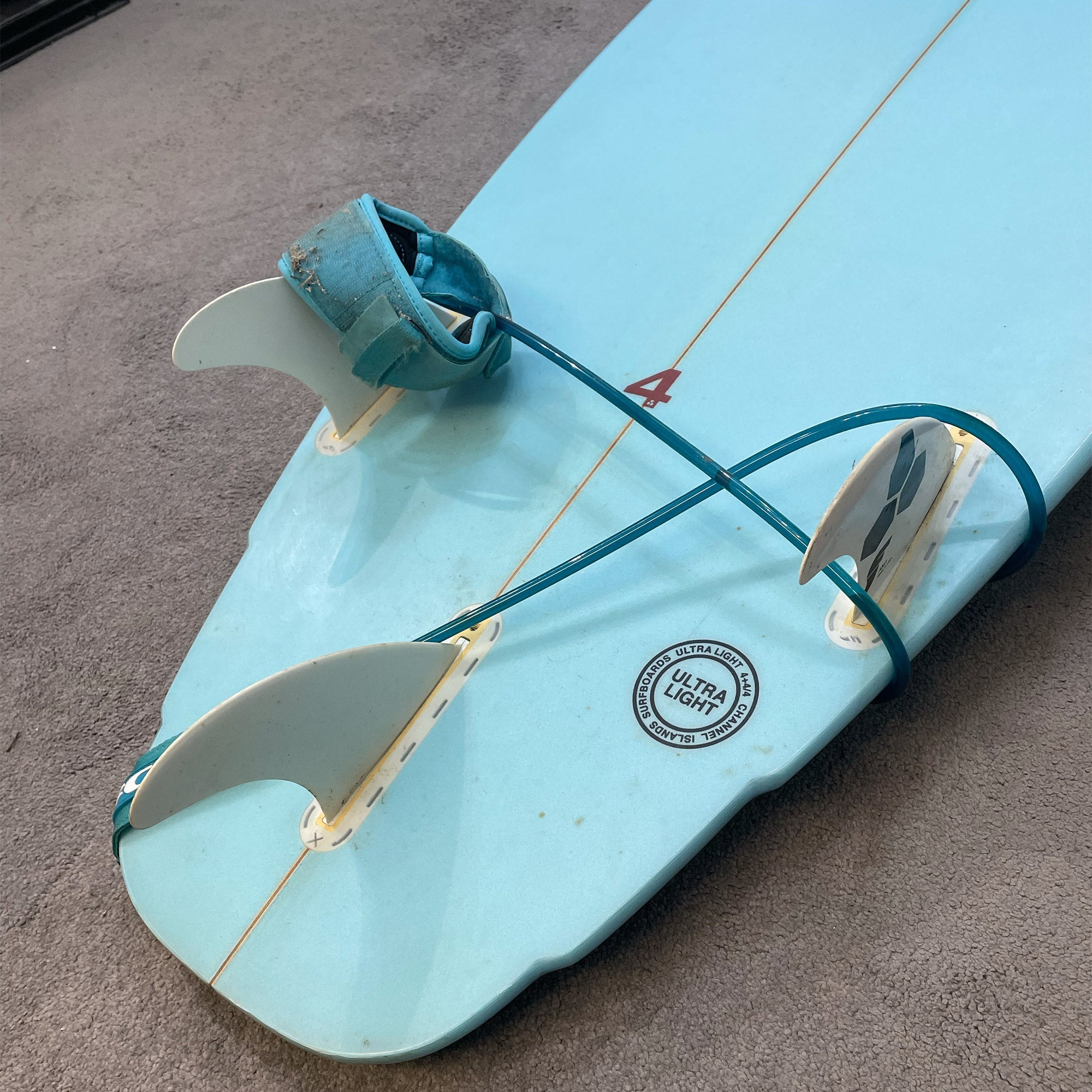 A performance based California utility board, the “four” was the fourth board in a series of numbered concept boards built for Dane Reynolds just prior to the US Open. Each concept board incorporated a blend of single to double with vee, 13”+ nose and 15”+ tail with a double bump. After a few months of tweaks and refinements, the result is a design that can be ridden in two different dimension sets to dial in the type of waves and conditions you ride. Dane rides a 5’8” x 19 1/2 a 2 7/16 as a GROVELER and a 5’9” 19 1/4 x 2 7/16” as a UTILITY board.