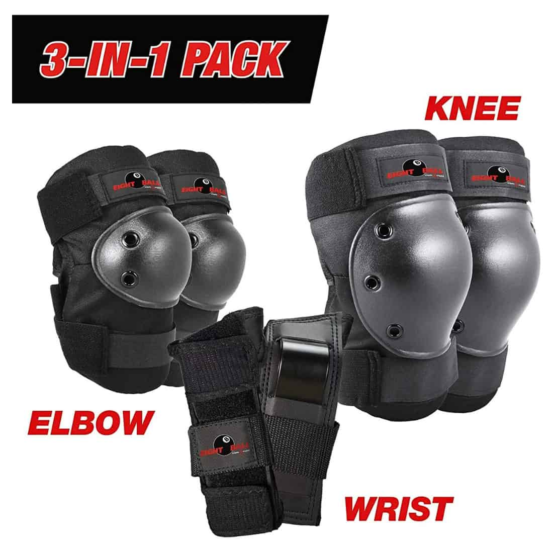 Young riders get dependable protection for skating, biking, and scootering with the Eight Ball pad set in black. The set includes three essential pieces that help guard knees, elbows, and wrists from bumps and scrapes during active play. Lightweight padding, adjustable straps, and a secure fit help keep the pads comfortably in place so kids can move freely and stay focused on fun. Durable construction from Eight Ball supports repeated use and helps provide confidence for beginners learning new tricks and skills.