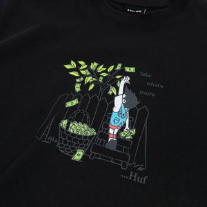 A bold chest graphic gives this Huf tee a straightforward streetwear edge, making it easy to wear with jeans, cargos, or shorts. The soft cotton build and regular short-sleeve cut keep it practical for everyday use, and the ribbed collar adds a sturdy finish at the neck. Huf branding stays subtle but recognisable, so the shirt brings personality without overdoing it. The black colourway keeps the look sharp and versatile.