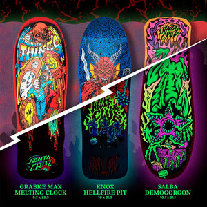 Step into the Upside Down with this special-edition Santa Cruz x Stranger Things collab, inspired by Claus Grabke’s iconic Melting Clock shape. This version features a vibrant glow-in-the-dark graphic based on Max’s unforgettable scene, a true standout piece for collectors and riders alike.