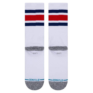 A great pair for every sneakers, the new Stance Boyd ST Socks is guaranteed comfy and stylish. This crew socks is of cotton blend material with Infiknit guarantee that makes it an ultra comfy and durable wear. It has reinforced toe and heel with arch support to snugly hug your feet and provide medium cushioning where you need it most. The Boyd ST socks has athletic ribbed cuffs to hold it in place all day. It has a seamless toe closure for irritation-free wear. This blue stripes sock has a Stance logo embroidery for brand recognition.