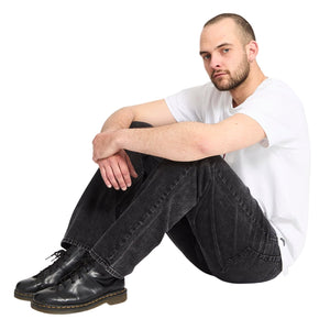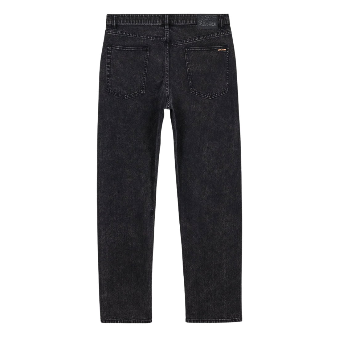 Comfort meets attitude in these relaxed tapered black denim jeans from Volcom, featuring a washed Blackity Black finish and a fit that sits below the waist for everyday wear, offering a balance of laid-back style and mobility in a sturdy cotton-blend fabric with signature Volcom details for subtle character.